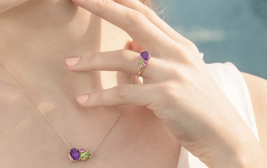 At Augustine Jewels, it has been used in several of our collections. Have a browse of a stunning selection of our jewellery using Amethyst: