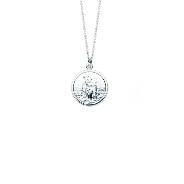 This simple silver necklace is a beautiful accessory, displaying the image of St Christopher engraved on a silver pendant. Traditionally used as a talisman for safe travel, this unisex necklace makes a lovely gift.