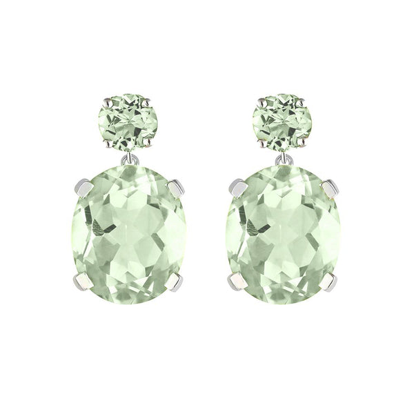 Sterling Silver or White Gold Green Amethyst Drop Earrings