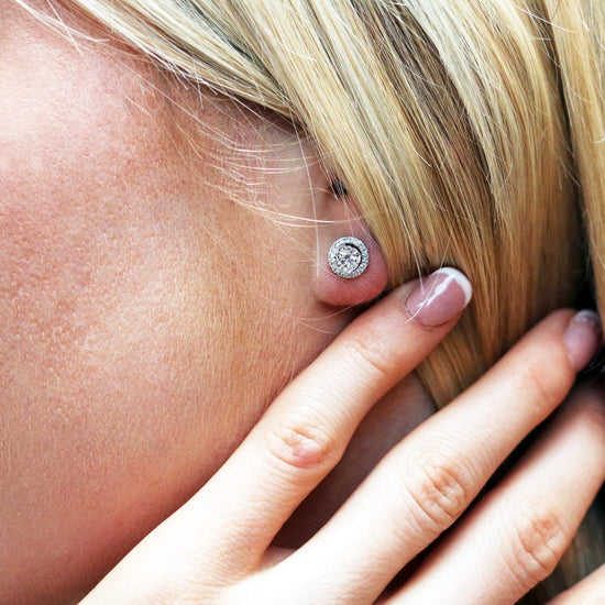 7. 18 ct Yellow Gold Diamond Halo Studs