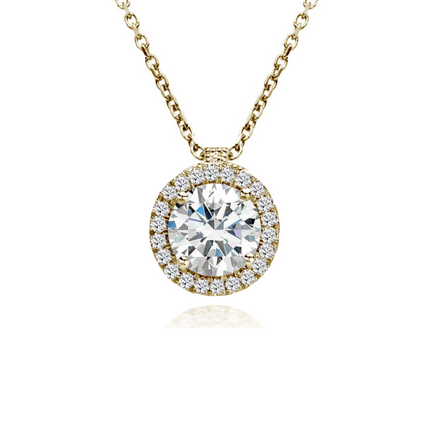 Our Women's Wedding Jewellery is the perfect accessory for the bride to be. From our Bridal Collection, this beautifully elegant halo necklace is made from 18ct white gold and diamonds. The centre brilliant cut stone measures 5.2mm in diameter and is approximately 0.5ct. Surrounded by 1.5mm round brilliant cut diamonds. A specific centre stone can be individually selected to suit different budgets - contact info@augustinejewels.com.