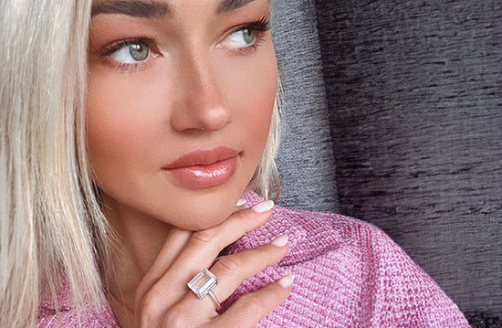 Here she is wearing her favourite, our stunning South of France Rose Quartz Cocktail Ring.