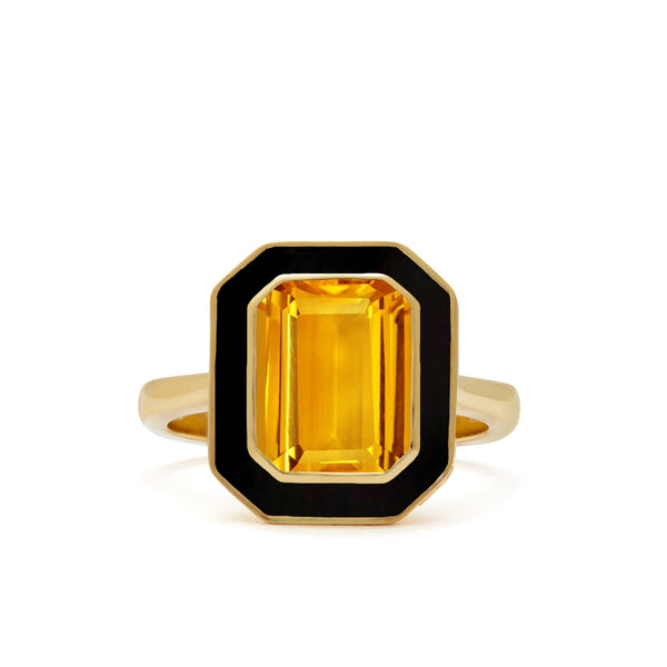 Citrine and Black Enamel Cocktail Ring