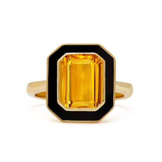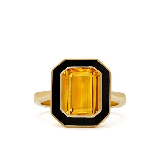 From our Aurora Collection, this stunning Citrine and Black Enamel Ring takes inspiration from sensational Yellow lights that can often be seen dancing in the dark Black skies above the Northern Hemisphere.