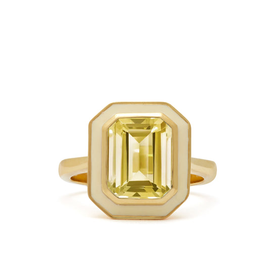 From our Aurora Collection, this stunning Citrine and Cream Enamel Ring takes inspiration from sensational Yellow lights that can often be seen dancing in the skies above the Northern Hemisphere reflecting on the pale snow.
