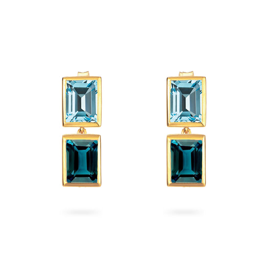 Featuring Sky Blue Topaz and Teal topaz, all 6x8mm Octagon cuts, these drop earrings have a total length of 2.2cm and really capture the movement of the stones.
