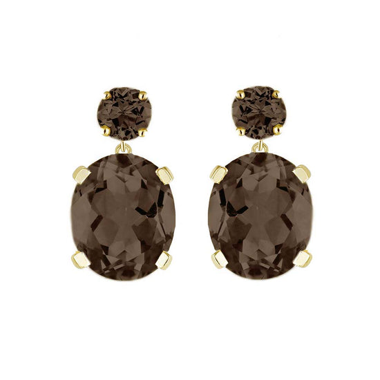 Two stones, twice the sparkle! From our South of France inspired Jewellery Collection, these yellow gold earrings feature a stunning oval smoky quartz hanging from a delicate smoky quartz stud. The colour is the perfect shade for summer and the two smoky quartz gemstones sparkle in the most beautiful way! You'll always feel like you're wearing a truly luxurious piece of jewellery!